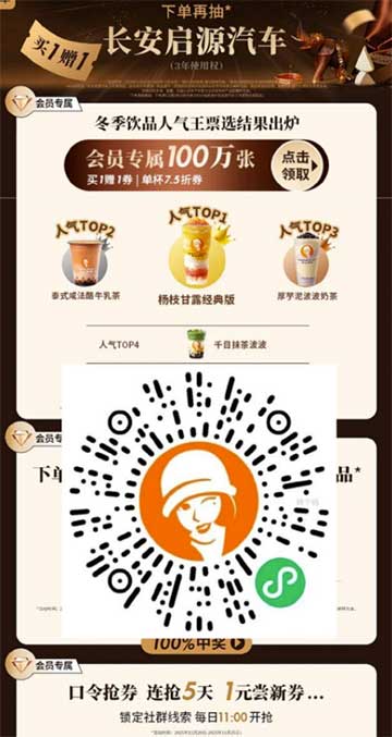 沪上阿姨1元喝 11月20-11月25 划到最底部有1元尝鲜活动