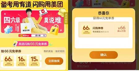 美团APP搜:【四六级】 截12.14日 每天都有1次机会