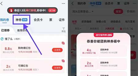 【支付宝领5元团购神券1亓购】支付宝首页“卡包”->顶部
